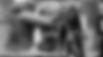 Tight end David Njoku (85) poses for the 2023 White Helmet Reveal Photoshoot at CrossCountry Mortgage Campus on June 8, 2023.